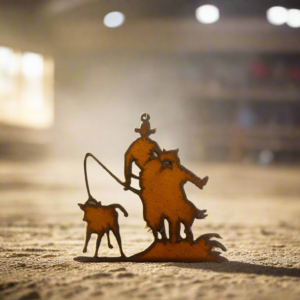 Calf Roper Western Rodeo Ornament. Celebrate the All American Pastime of Rodeo and the humble Calf Roper. This beautifully designed piece captures real life action for the ranching community and the old Wild West.