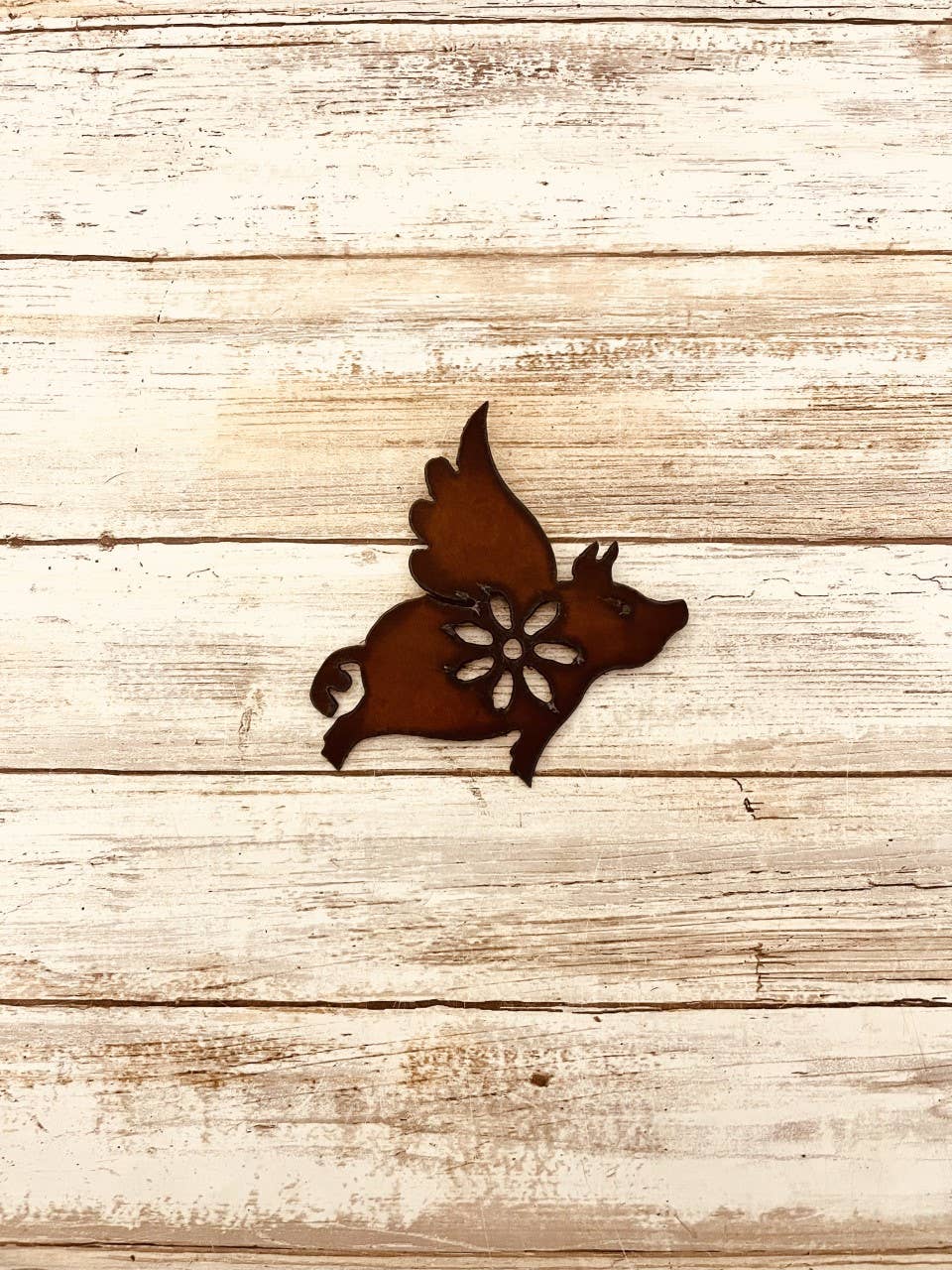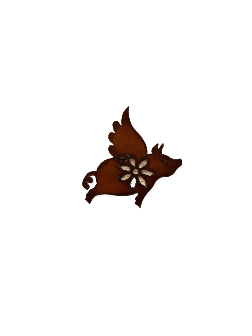 Experience a touch of whimsy with our Flying Pig Garden Friend Magnet from Universal Ironworks Inc. Crafted in the heart of Prescott, Arizona, this charming piece brings a delightful spark to any magnetic surface. Each magnet is individually rusted, giving it a unique and rustic appeal. Perfect for adding a fun twist to your decor or as a gift for those who appreciate the extraordinary. American made, for quality you can trust.