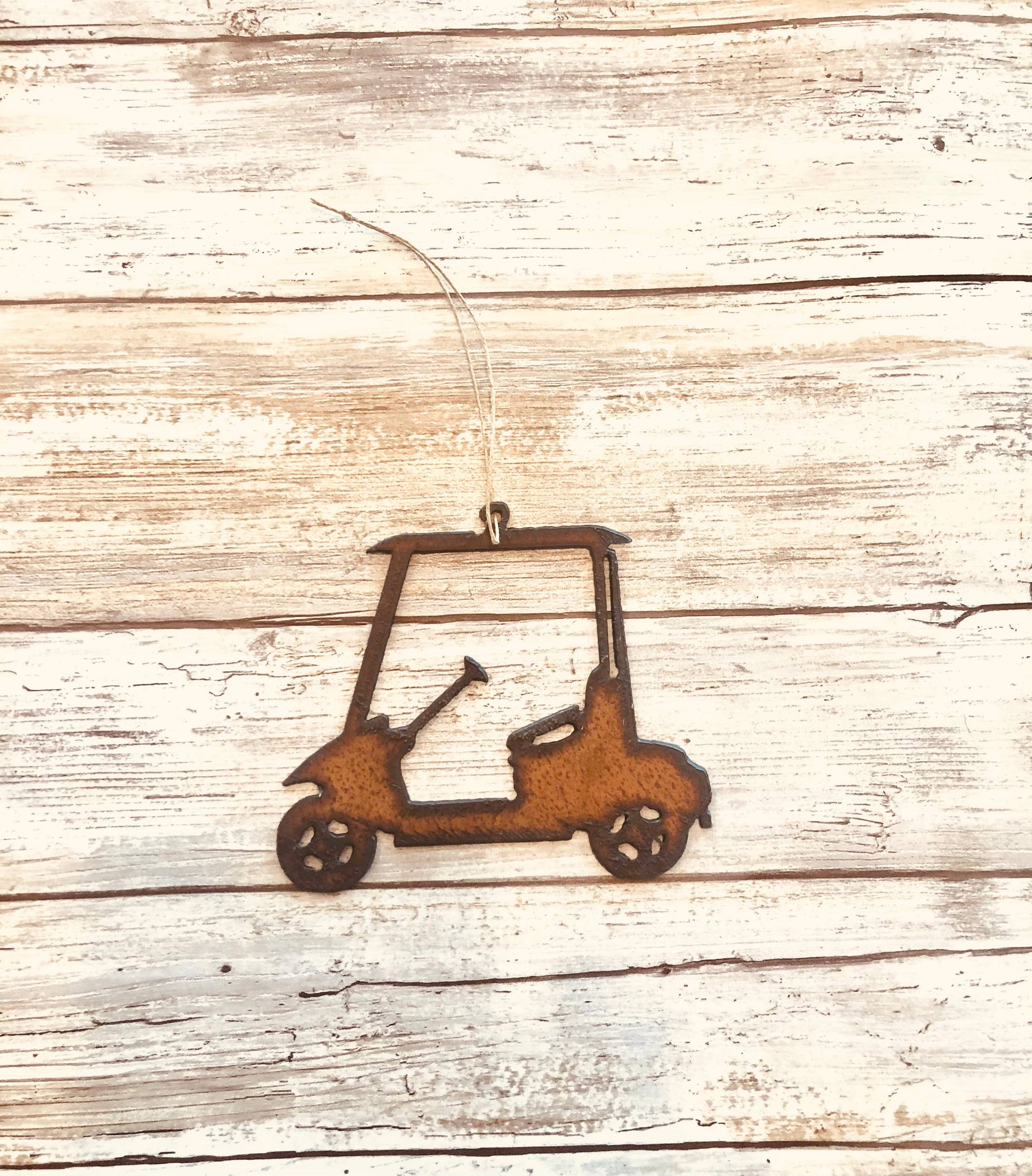 Discover the charm of our Golf Cart Ornament by Universal Ironworks Inc. This delightful decoration is perfect for adding a touch of fun and whimsy to your home accents. Whether you're a golf enthusiast or simply appreciate unique decorative objects, this ornament is a wonderful addition to your collection. Enjoy the quality of small ironworking gem nestled in the valley of Prescott National Forest.