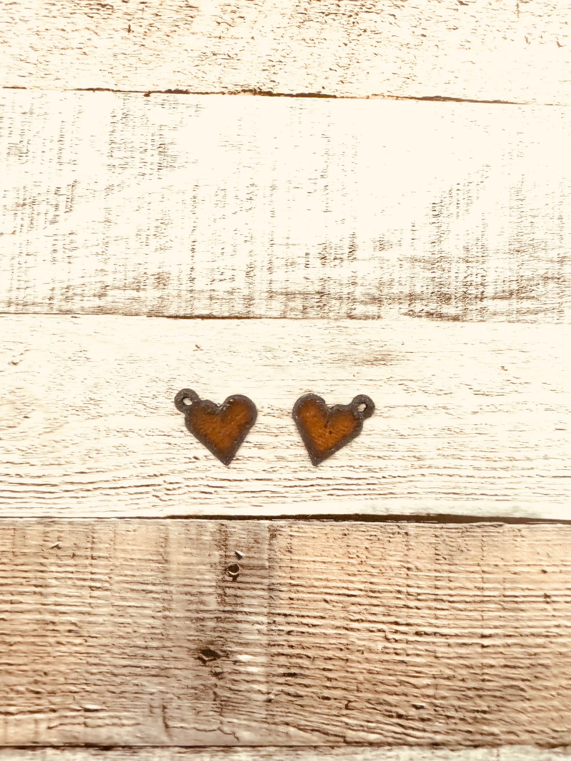 The Heart Earring Findings are the perfect size for the DIY Jewelry creator! Cut in rustic style, the avid creator can easily affix these pieces to the posts of their choosing for a unique look that makes easy custom earrings, hat pins, or tie tacks. Designed in mirrored pairs, 2 pieces total. Perfect for gifts, self-expression, or even to trade.