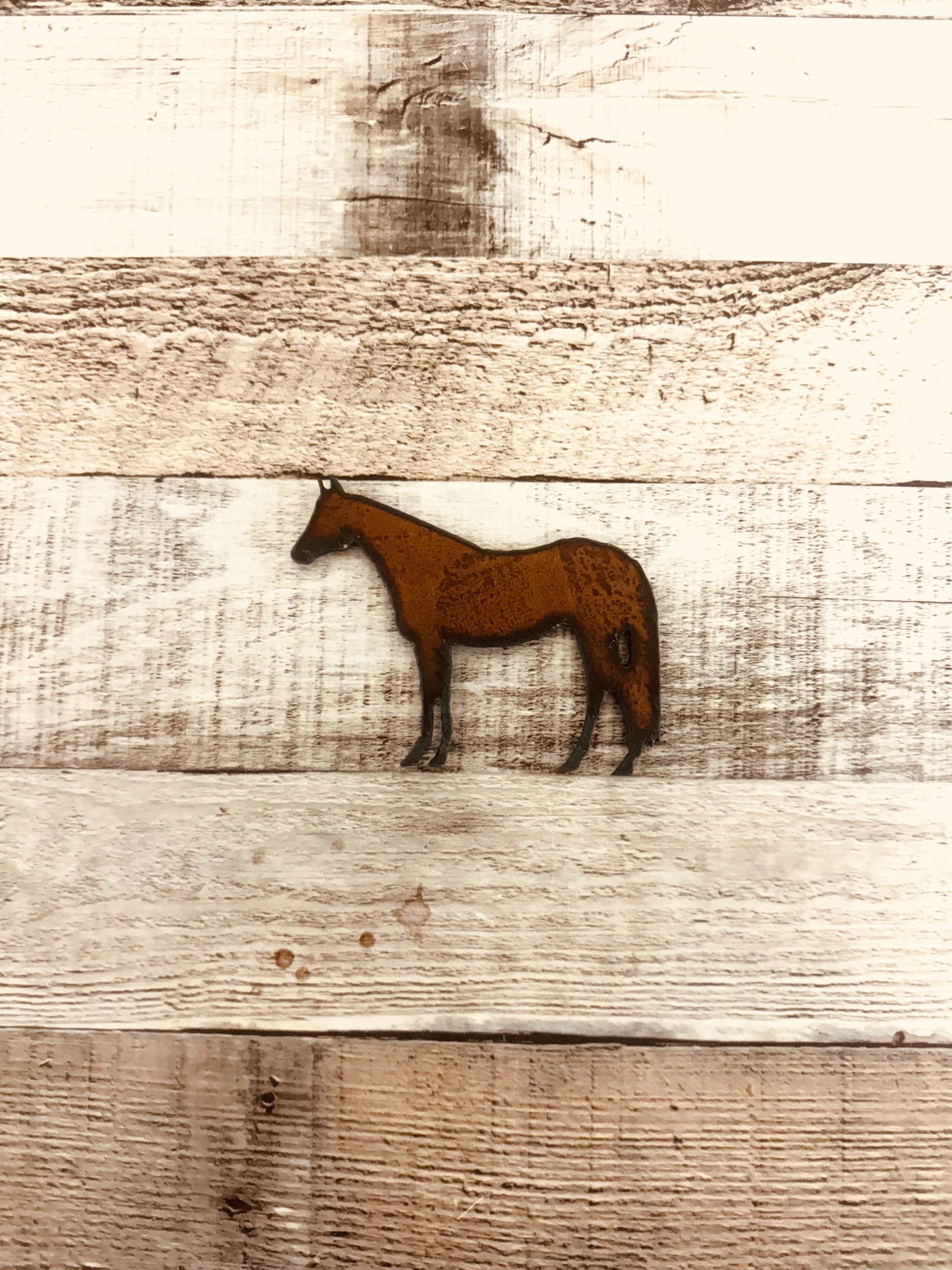 Quarter Horse Rustic Western Metal Magnet Rodeo Gift measures 4 x 3.25".