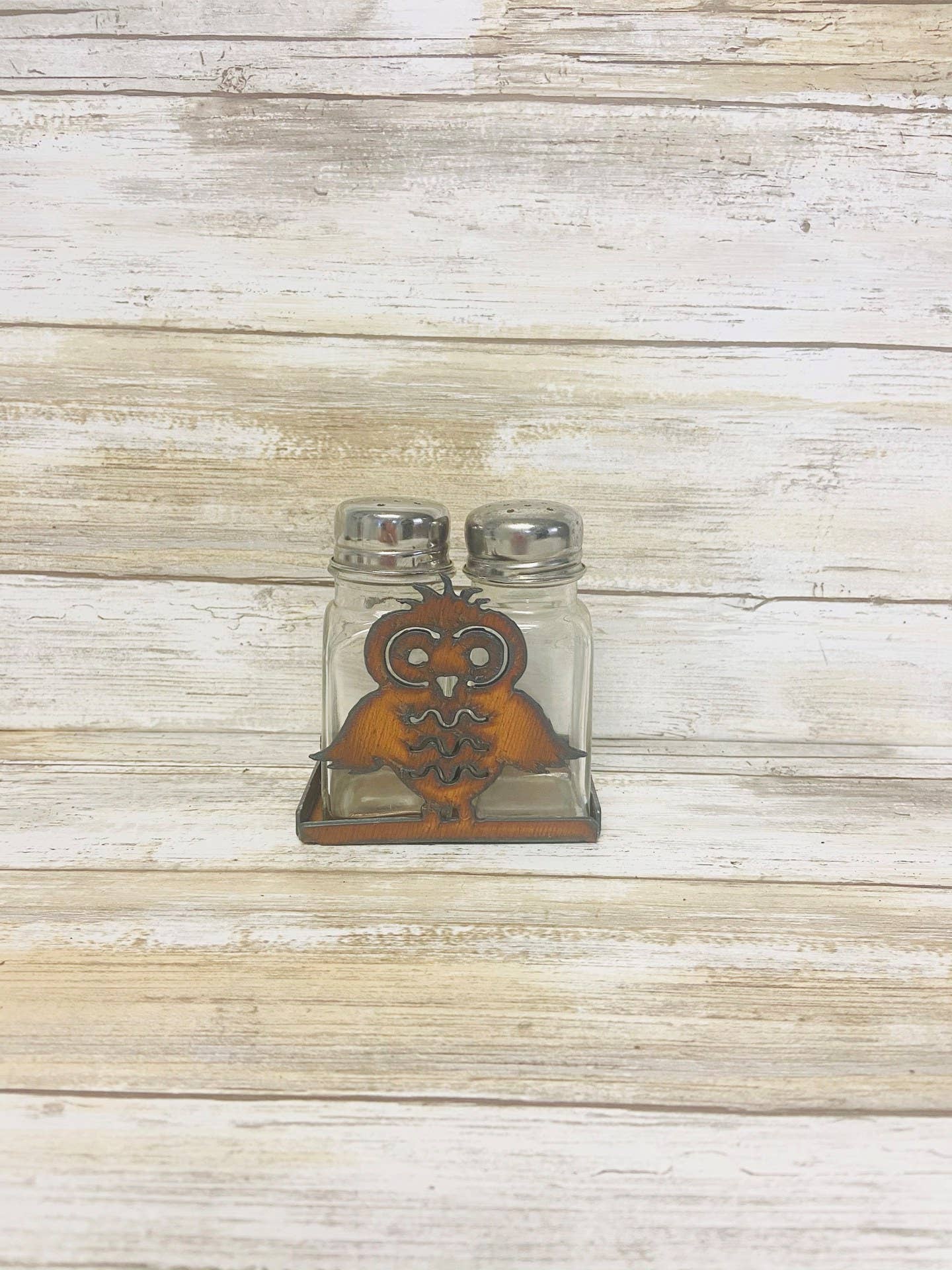 Discover a touch of rustic charm for your kitchen with the Owl Salt N Pepper Shaker Set from Universal Ironworks Inc. Crafted in the heart of Prescott, Arizona, this delightful set is a testament to American-made quality. Each piece is individually rusted for a unique, authentic finish that will stand out on any table. Perfect for both large gatherings and intimate dinners, this shaker set is a versatile addition to your kitchen essentials. Bring home a piece of our ironworking gem today. Base Measures 4"x2" with the ornament measuring between 3.5-5H"