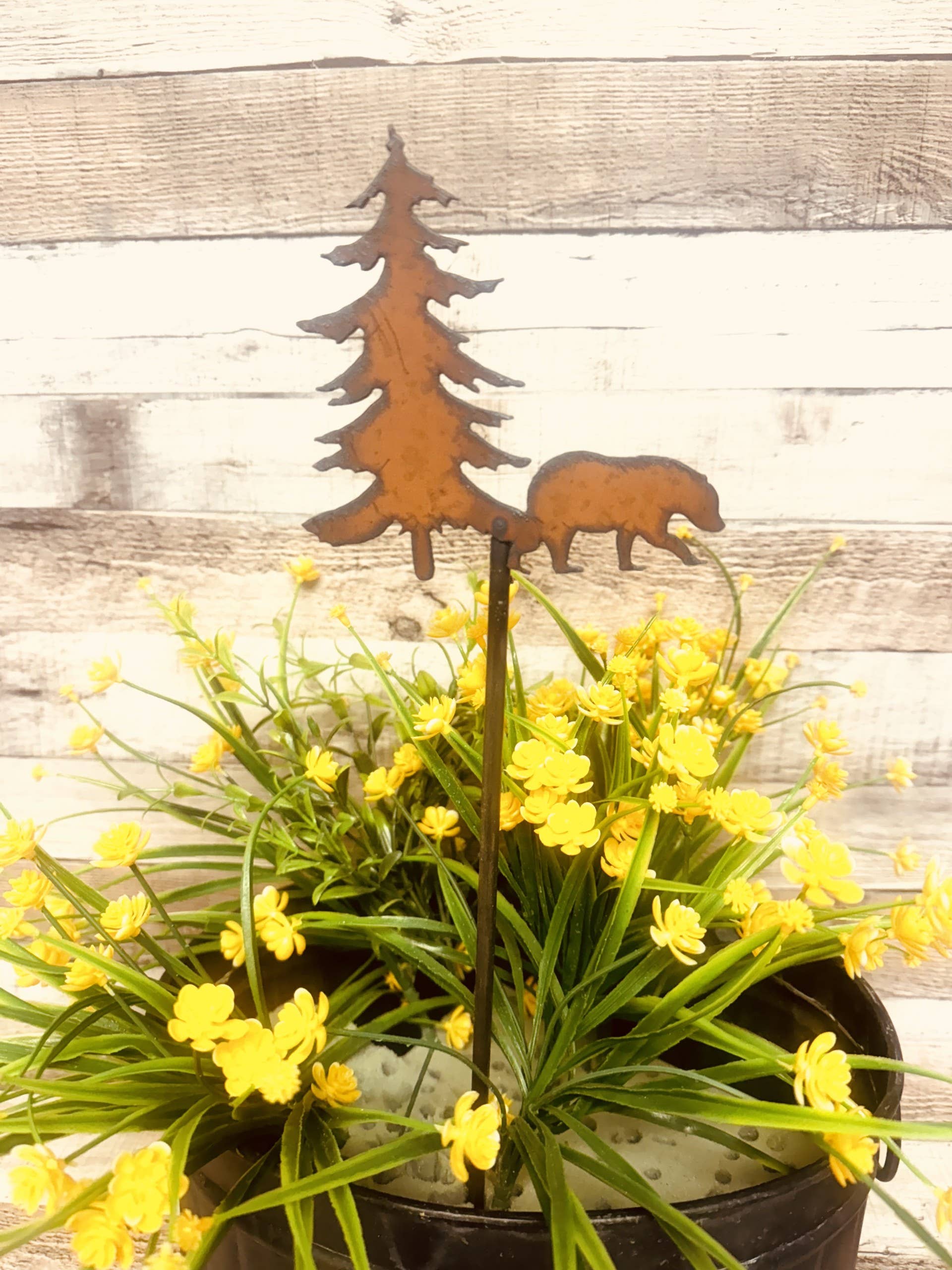 Black Bear and Tree Rustic Metal Garden Plant Stake