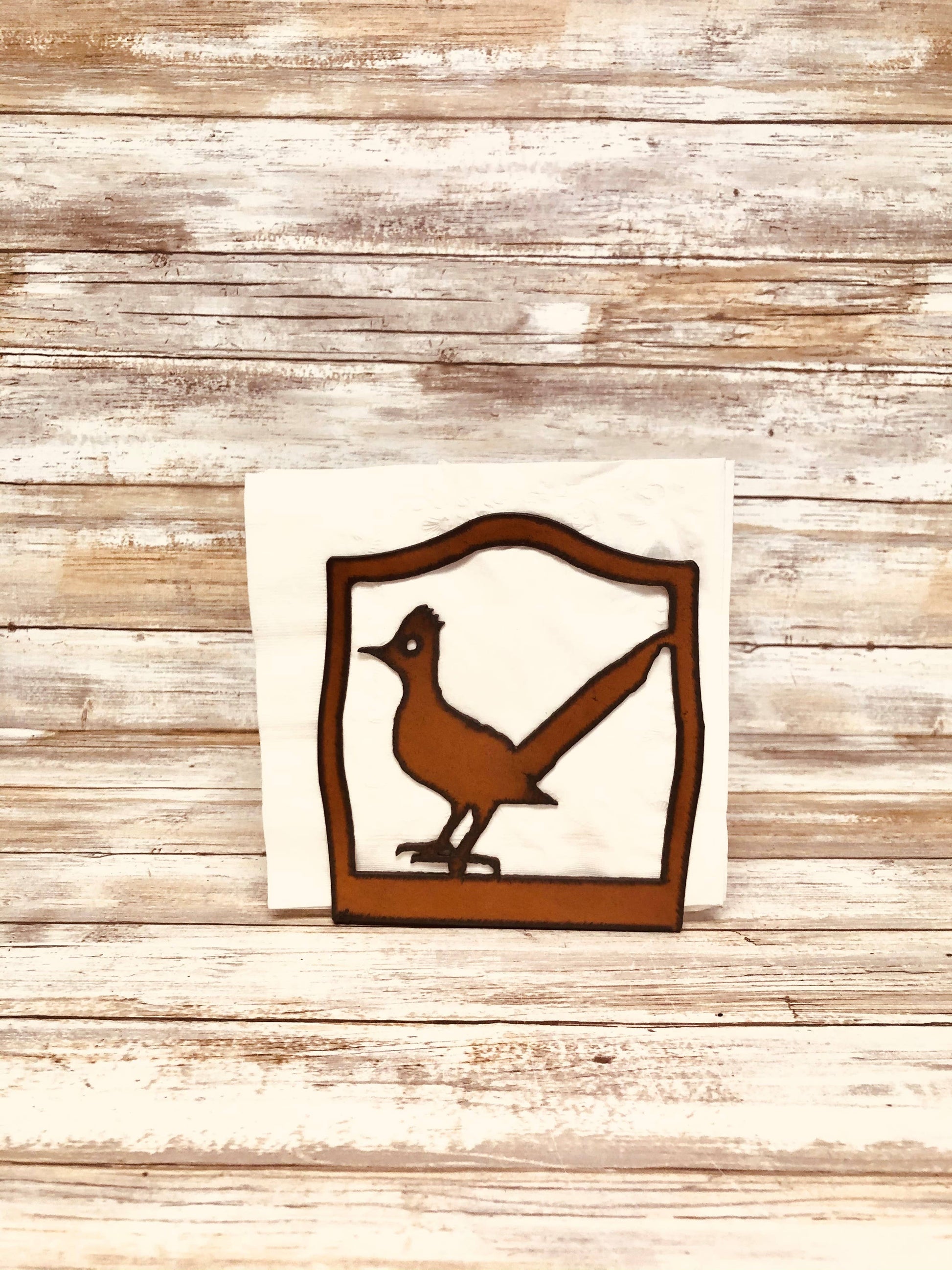 Roadrunner Napkin Holder. These stylish and durable 18 gauge steel Napkin Holders measure 6"x5.5" and fit a variety of standard napkin sizes. Perfect for home, restaurant, or use for mail drop, tablet stand, magazine storage, or even convenient organization around the home or office.