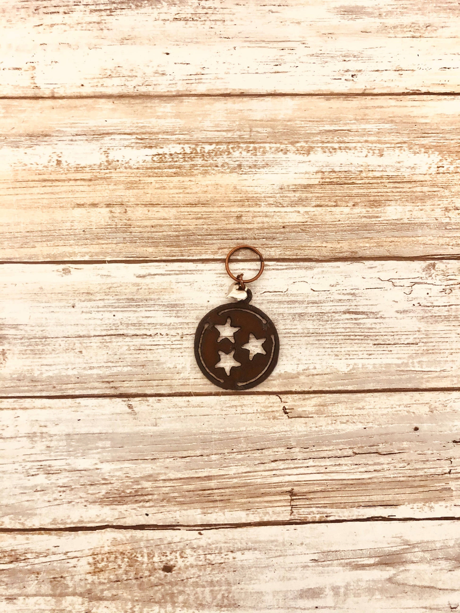 Discover a blend of style and functionality with our Tennessee Tri Stars Keychain from Universal Ironworks Inc. Ideal for both men and women, it's not just an accessory but a testament to the quality of small and large scale ironworking. This keychain is truly a small ironworking gem. Makes the Perfect Keychain or Shoe Charm, or a Stylish Bag Charm.
