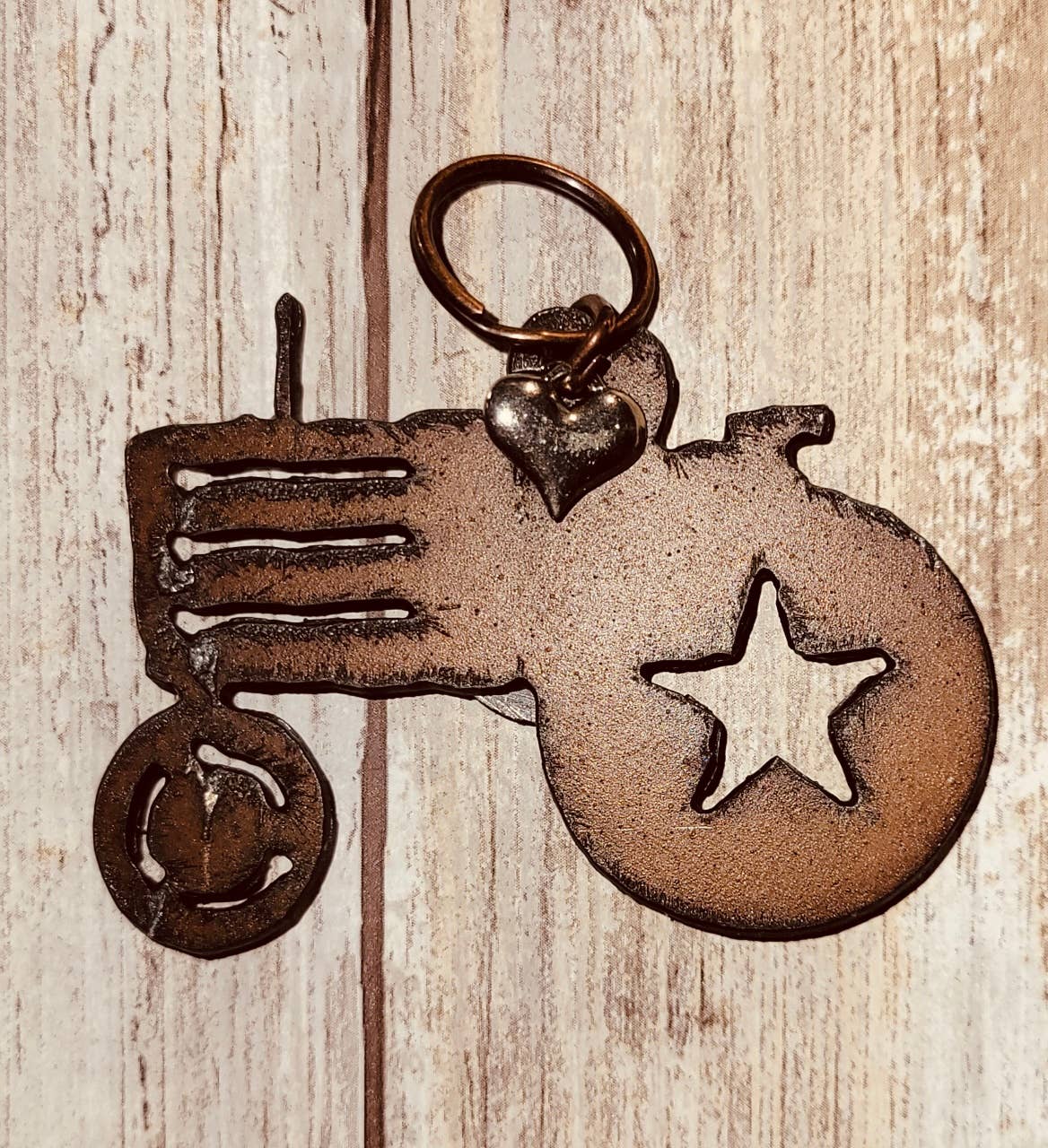 Show off your love for farming with our Tractor Farm Keychain by Universal Ironworks Inc. This unisex keychain, intricately designed with American made steel, is not just an accessory but a statement of your passion. Whether for personal use or as a gift, it's a small piece of our ironworking excellence you can carry around. Makes the Perfect Keychain or Shoe Charm, or a Stylish Bag Charm.