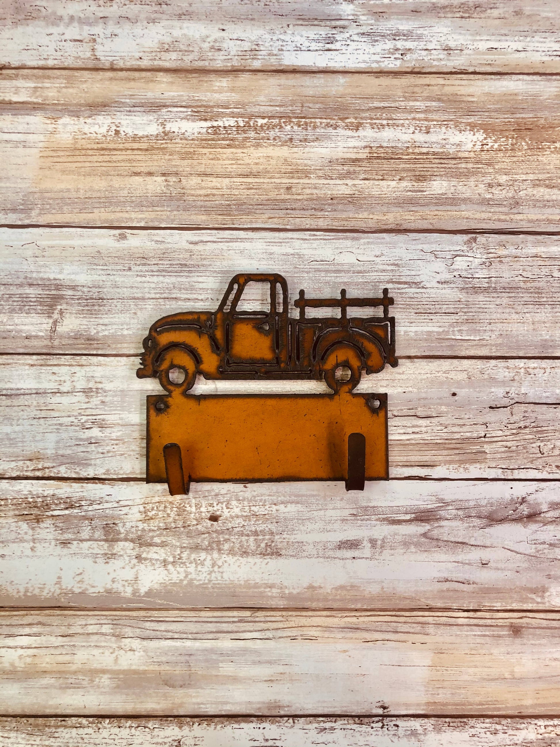 Experience a blend of style and functionality with the Vintage Truck Double Key Hook from Universal Ironworks Inc. This 5-inch wide wall hook is perfect for keeping your keys organized and easily accessible. Crafted for year-round use, it adds a touch of rustic charm to any decor.